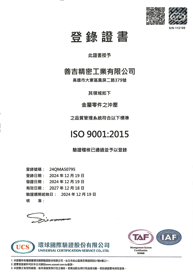善吉精密工業有限公司成立於1988年,原名四仲精密工業股份有限公司,位於新北市五股區。 於1997年遷廠至高雄市大寮區,改名為善吉精密工業有限公司。